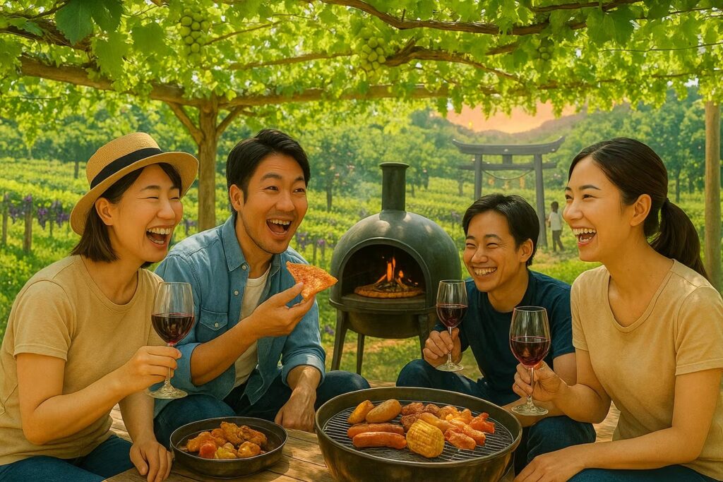 ワイン村のワインを楽しめるワイン好きの夢を叶えるBBQエリアに!